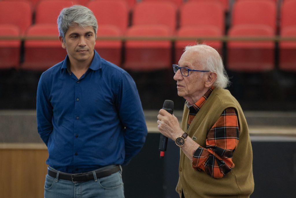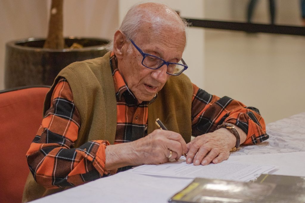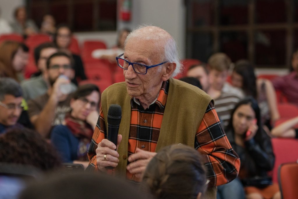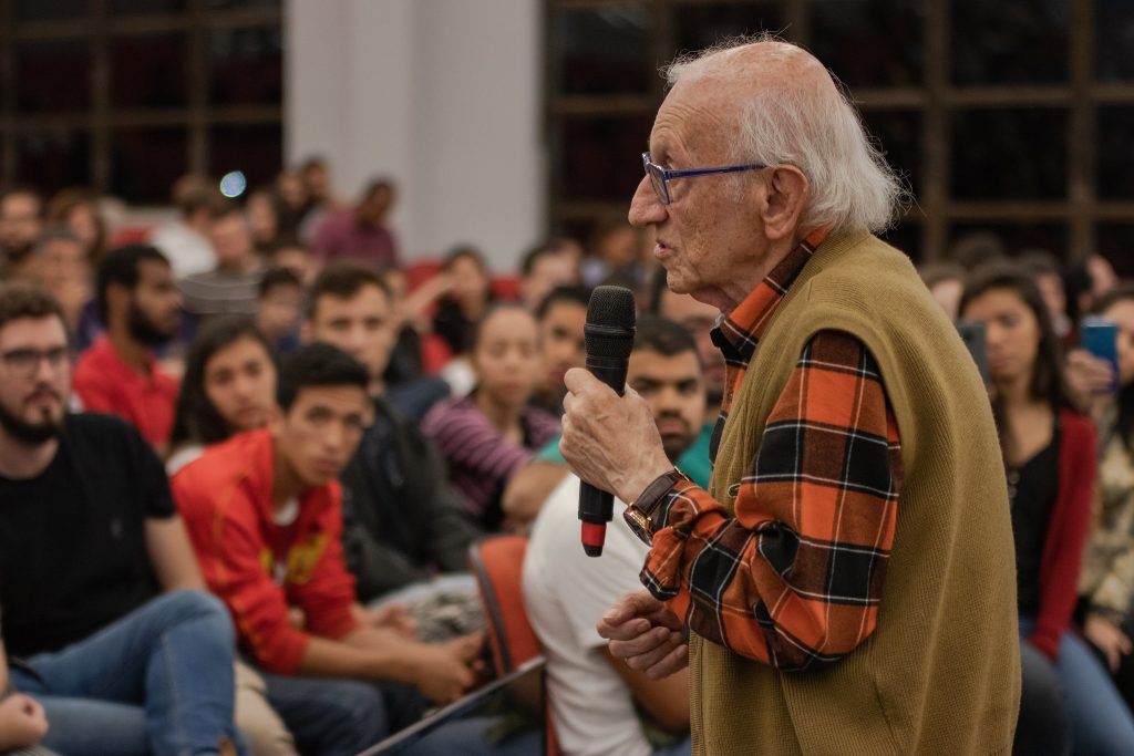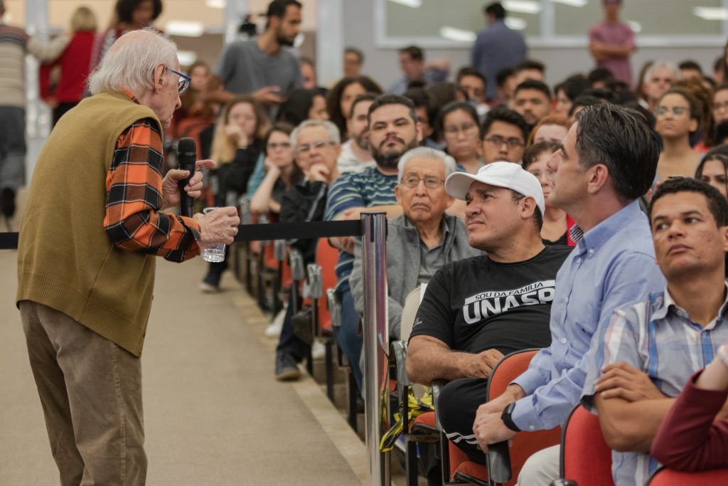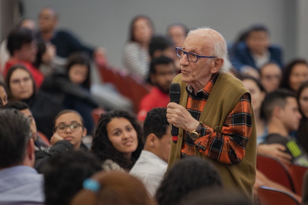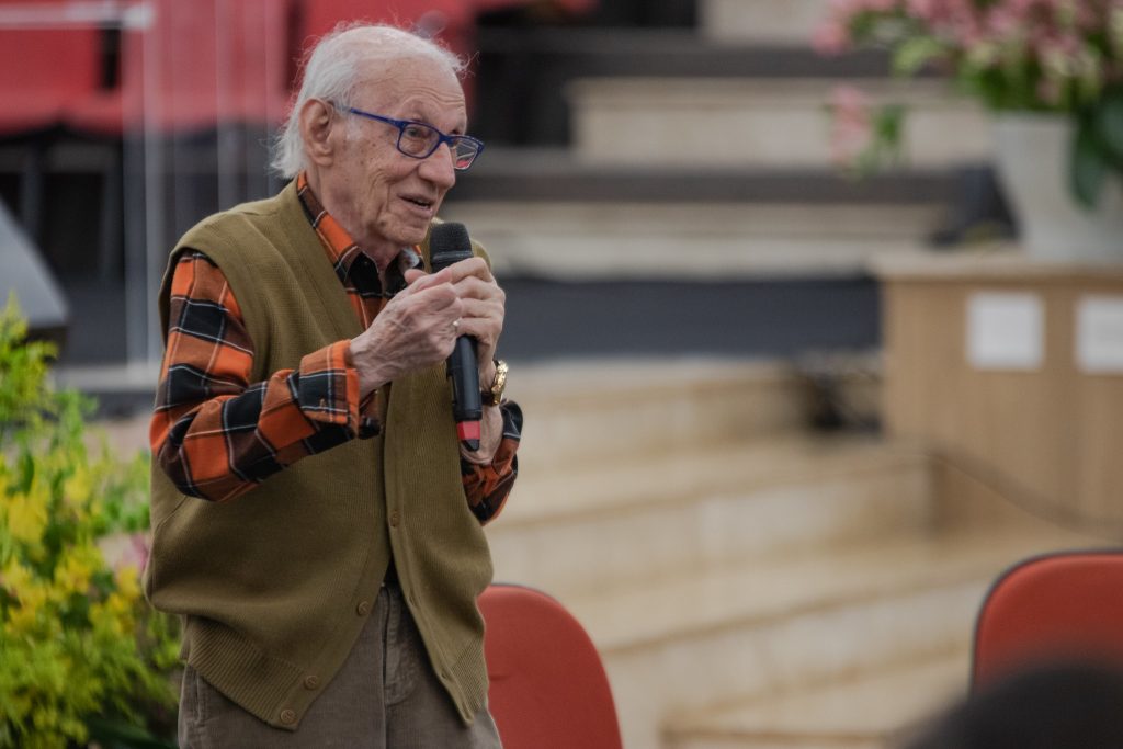 A primeira noite da Semana Interdisciplinar do Unasp-EC, realizada pelos cursos de História e Pedagogia do campus, trouxe um assunto muito delicado a público: o período do Holocausto e a experiência de quem sentiu na pele as consequências do nazismo. A programação aconteceu na Igreja do campus durante o período de aulas noturno e contou com a participação do último sobrevivente brasileiro do holocausto, que falou sobre sua luta durante o governo fascista de Adolf Hitler.