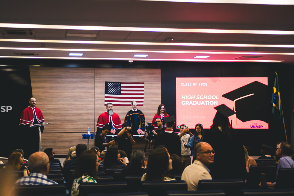 Os estudantes do Colégio UNASP, unidade Engenheiro Coelho, concluíram o programa High School e celebraram mais uma formatura nesta quinta-feira (11), no auditório da reitoria. Durante a celebração, os formandos vivenciaram momentos especiais de despedida, compartilhando memórias com colegas e professores que os acompanharam ao longo dessa jornada.