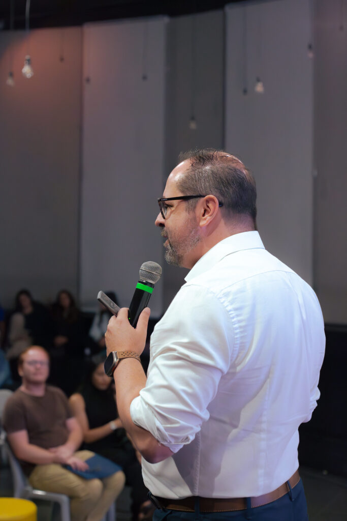 Em sua palestra, o professor Luís Henrique dos Santos, fez um discurso direto aos alunos. Em tom de desafio e encorajamento, ele lembrou que o curso não foi criado para formar seguidores, mas líderes. Reforçou que cada estudante ali tem talento, caráter e propósito, e que deve sair preparado para conduzir, não apenas participar. “Vocês são luz. O mundo precisa de publicitários como vocês”, conclui.