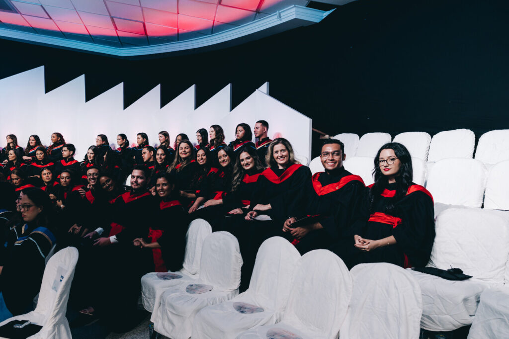 Sob calorosos aplausos, os bacharéis adentraram o local da cerimônia e foram recepcionados pelo professor-paraninfo, doutor Igor Marquês. O momento foi compartilhado também com os formandos dos cursos de Administração, Ciências Contábeis, Comunicação Social e Jornalismo.