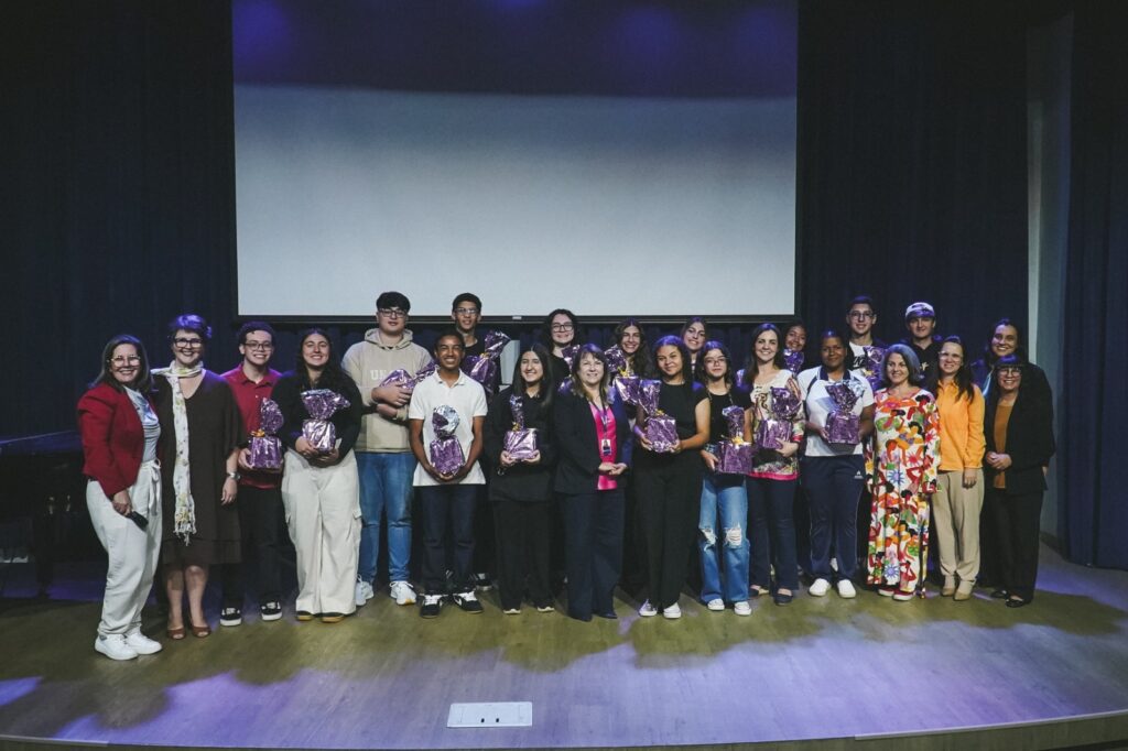 Como parte desse reconhecimento, Stella convidou os alunos a subirem ao palco para serem recebidos com uma salva de palmas do público presente.