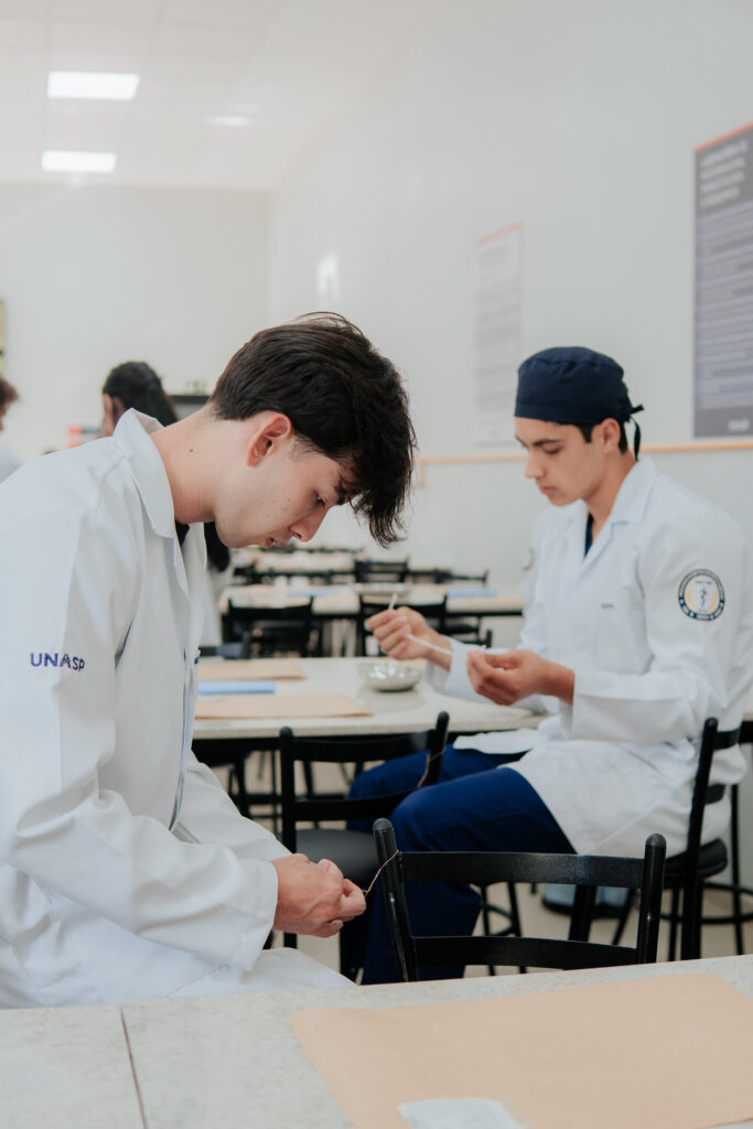 A primeira oficina foi dedicada às técnicas de sutura, conduzida pelo cirurgião geral e endoscopista Elmer Schmidt Lima, na qual os alunos tiveram a oportunidade de aprender e praticar procedimentos fundamentais para a atuação médica. Em outra oficina, a enfermeira Vivian Zorzim, do UNASP campus Hortolândia, orientou os estudantes sobre a aplicação de injetáveis e a manipulação de medicações, oferecendo uma vivência prática sobre cuidados essenciais no manejo de pacientes.